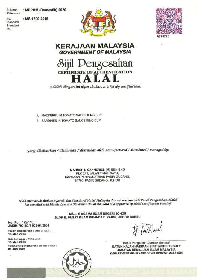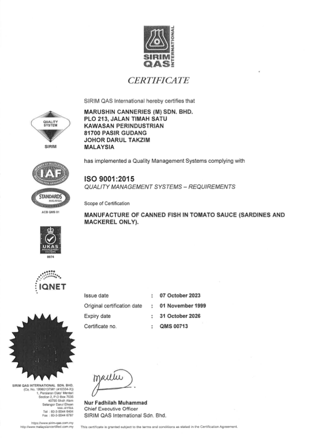 Marushin Canneries Malaysia Sdn Bhd (MCM), a canned food manufacturing & sales company is an established joint-investment company between Kumpulan FIMA Berhad, Kawasho Foods Corporation, Japan and Wamda Holdings Sdn Bhd in 1987. The factory which is located 30 kilometres in suburbs from Johor Bahru City in Pasir Gusdang Industrial Estate, produces the freshest canned sardines and mackerels locally.